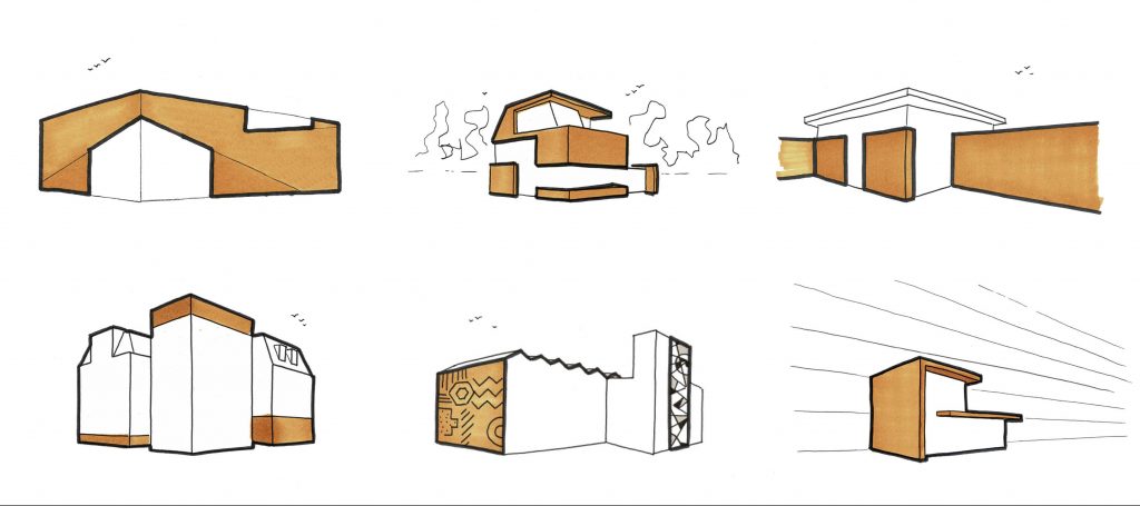 Ontwerpschetsen voor de transformatie van een typische jaren vijftig villa