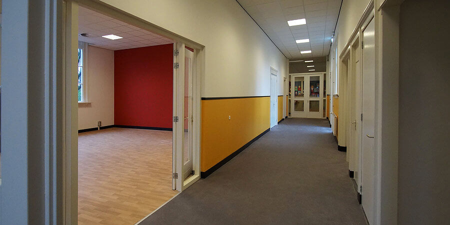 De schilders zijn aan de slag gegaan in buurtcentrum de Til en hebben de gangen een mooie ‘oude school’ sfeer gegeven. Daarnaast hebben de ruimtes van het CJG en JGZ warme rode en oranje kleuren gekregen.
