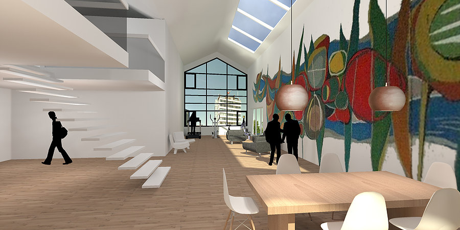 De studie naar wonen in de voormalige Aula van de Haarlemse School is uitgebreid met een optie voor kleine appartementen. Tot 20 maart is er een tentoonstelling in het ABC Haarlem over het werk van Hans Wiesman (1918-1988) die verantwoordelijk is voor de kunstwerken in het gebouw.