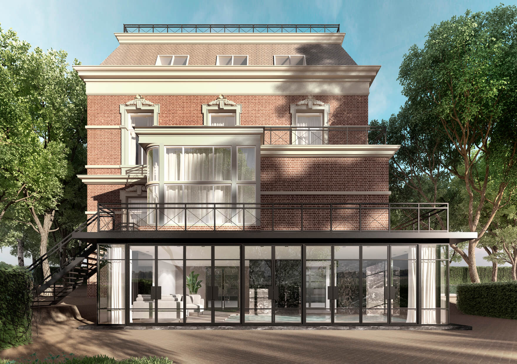 In de prachtige monumentale villa aan het Florapark in Haarlem heeft tot 2018 een bank gezeten. Het oorspronkelijke interieur is behoorlijk aangetast. Het pand krijgt weer een woonfunctie en onderdelen worden weer in oorspronkelijke staat herstelt en aangevuld met hedendaagse techniek en afwerkingen. In de nieuwe aangebouwde tuinkamer in stijl komt het zwembad. De parkeerplaats wordt een groene oase.