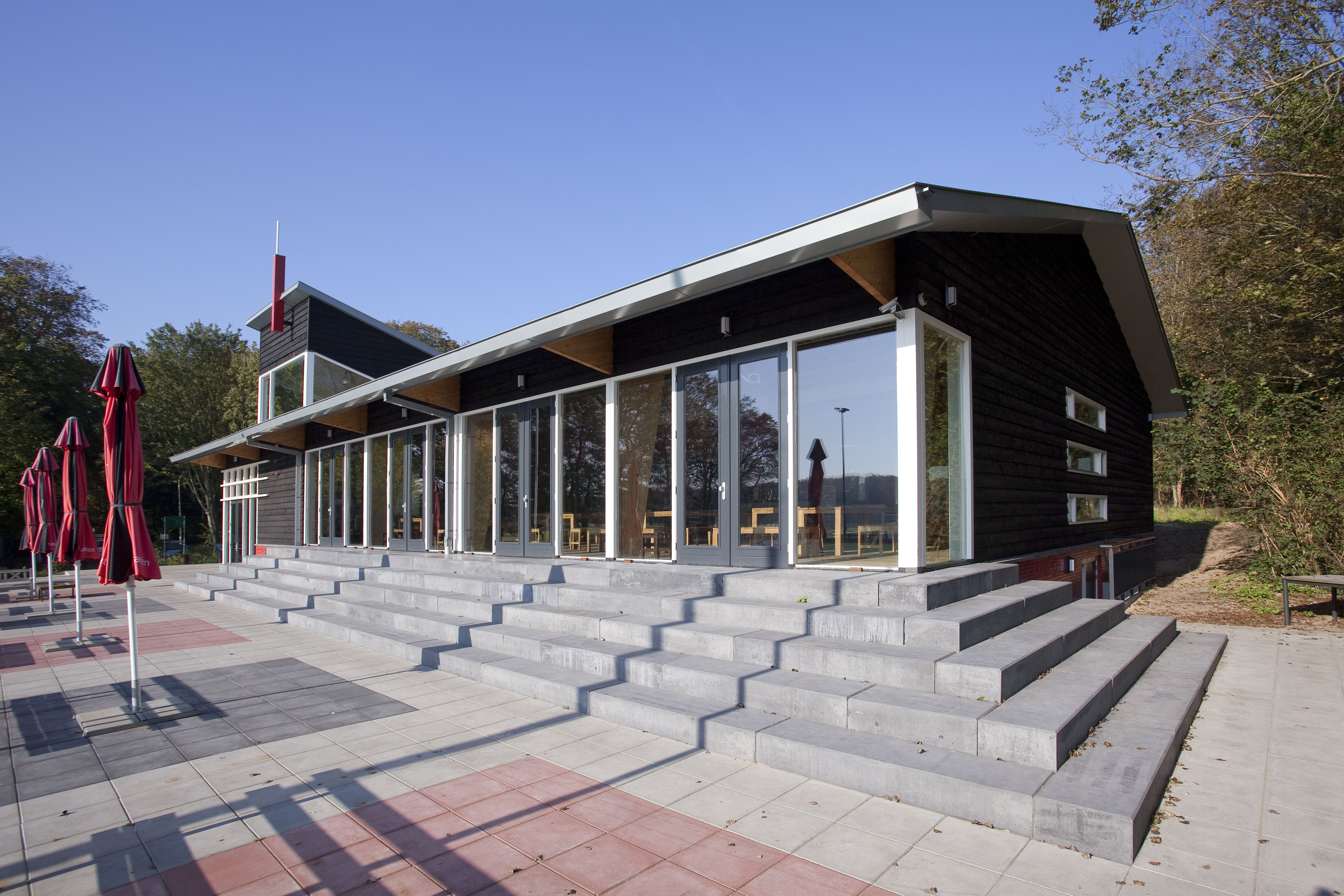 Om een aansprekend en voor HBS uniek clubhuis te ontwerpen is gekozen voor karakteristieke stijlkenmerken en de kleuren van de club. De gevels zijn van natuurlijke zwarte lariks schaaldelen en de plint bestaat uit knalrode geglazuurde bakstenen waaraan de leden hun steentje konden bijdragen.